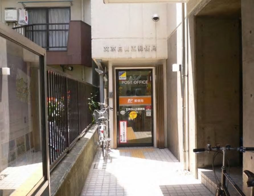 スーパー:まいばすけっと白山5丁目 370m スーパー:Santoku白山店 393m スーパー:コープみらい 白山店 443m コンビニ:セブンイレブン 文京本駒込1丁目店 266m コンビニ:ローソン 文京白山五丁目店 255m コンビニ:ファミリーマート 本駒込一丁目店 309m ドラッグストア:マツモトキヨシ白山五丁目店 432m ドラッグストア:くすりの福太郎白山店 730m ドラッグストア:薬局トモズ 白山店 674m 郵便局:文京白山五郵便局 276m